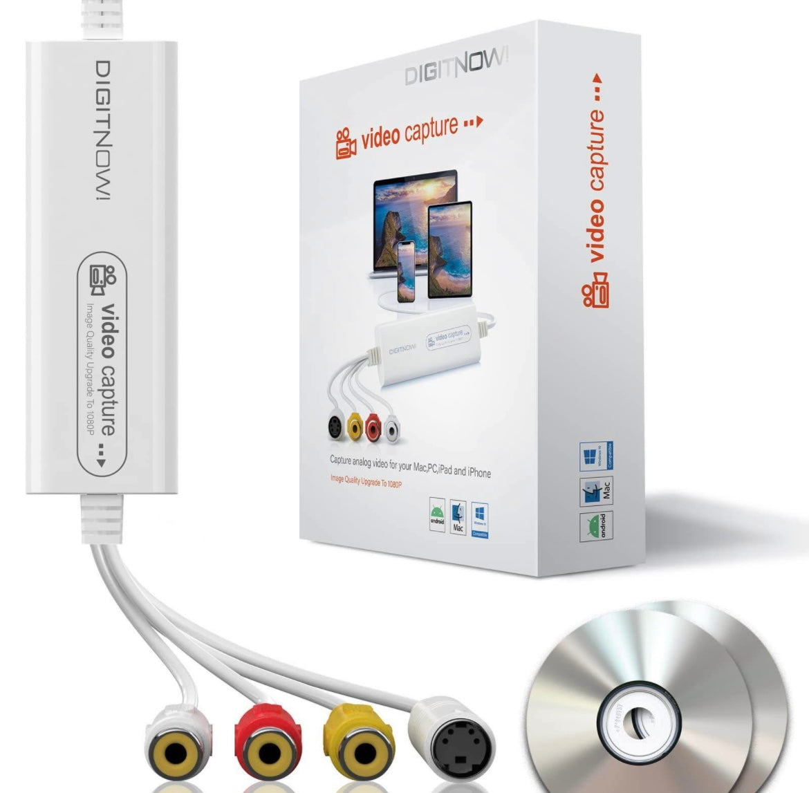 DIGITNOW! USB 2.0 Video Capture Card, VHS VCR TV to DVD Converter, Support for Mac OS X PC Windows 7 8 10 White Medium