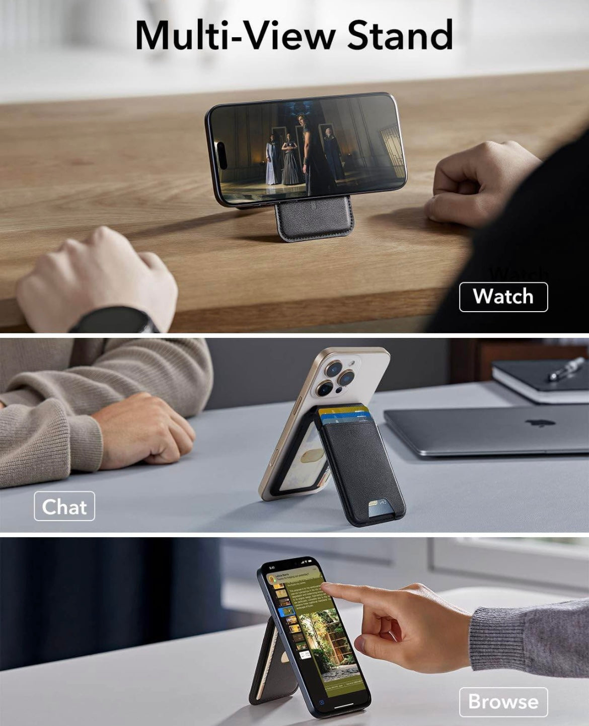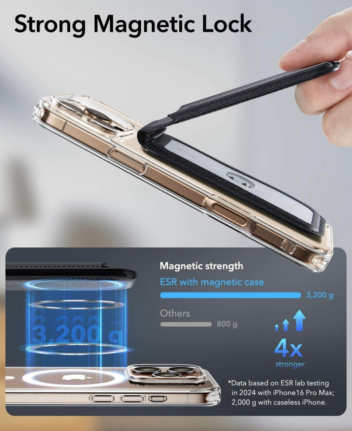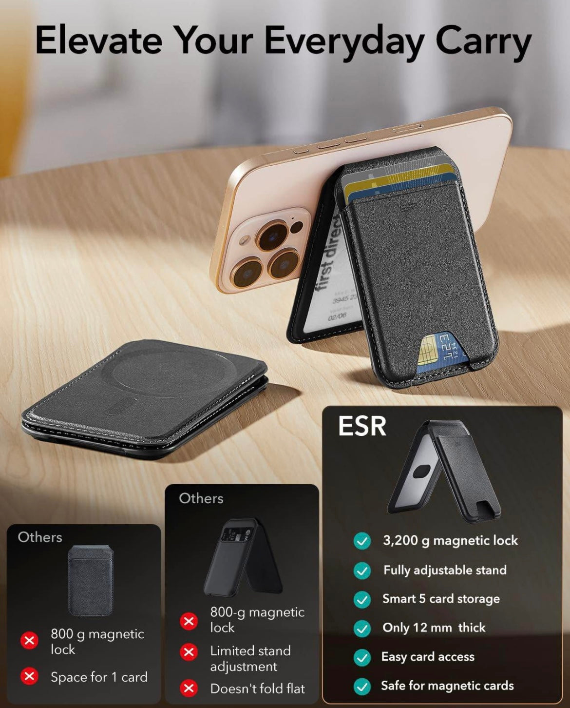 Stronger Magnetic Lock: the ESR magnetic phone wallet with 3,000 g of holding force is 275% stronger than the official brand to ensure that your wallet stand stays securely locked on