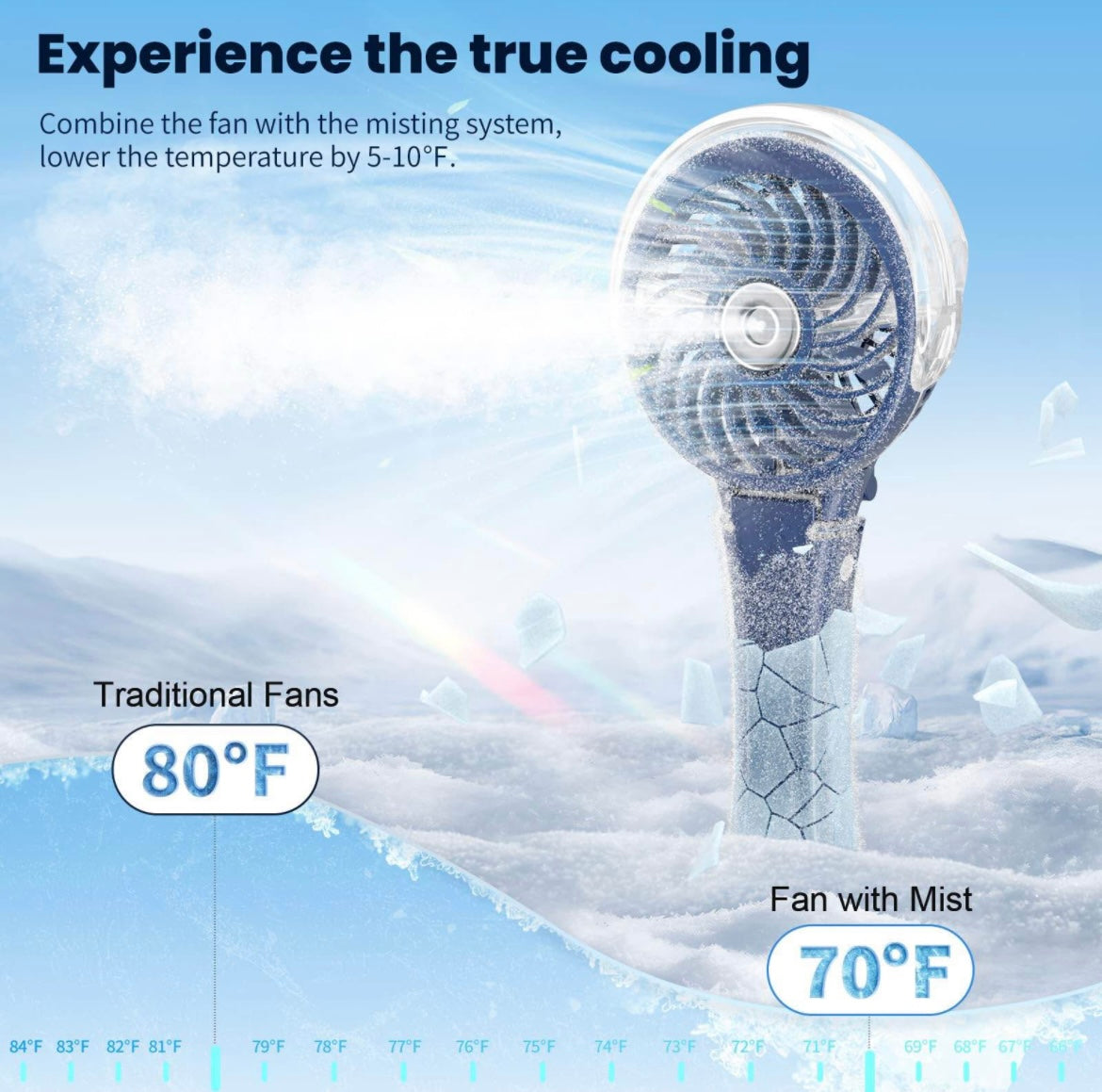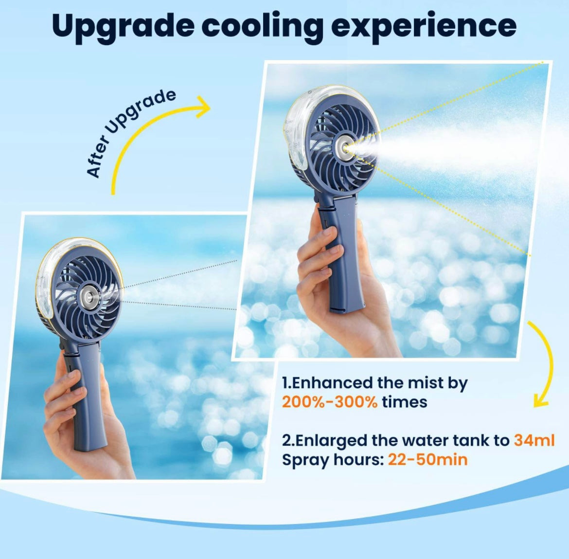 HandFan Upgraded Portable Handheld Misting Fan, Rechargeable Personal Mister Fan, Spray Water