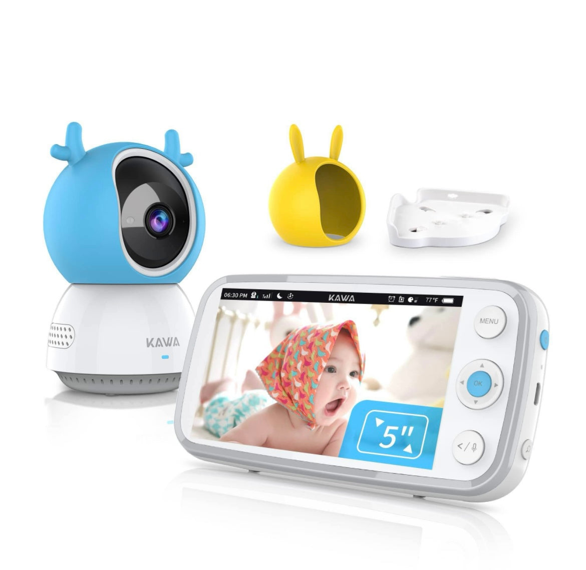 【5’’ 720P Screen & Night Vision】 - KAWA baby monitor has large 5'' 720P HD display offers you a crisper picture, it brings you the real scenes of what your baby does and whether your baby is safe. Just having a dim light source in your child’s room will be enough for the seperior night vision feature to give you a crystal clear picture of your baby. (*Note: this package only include one camera)