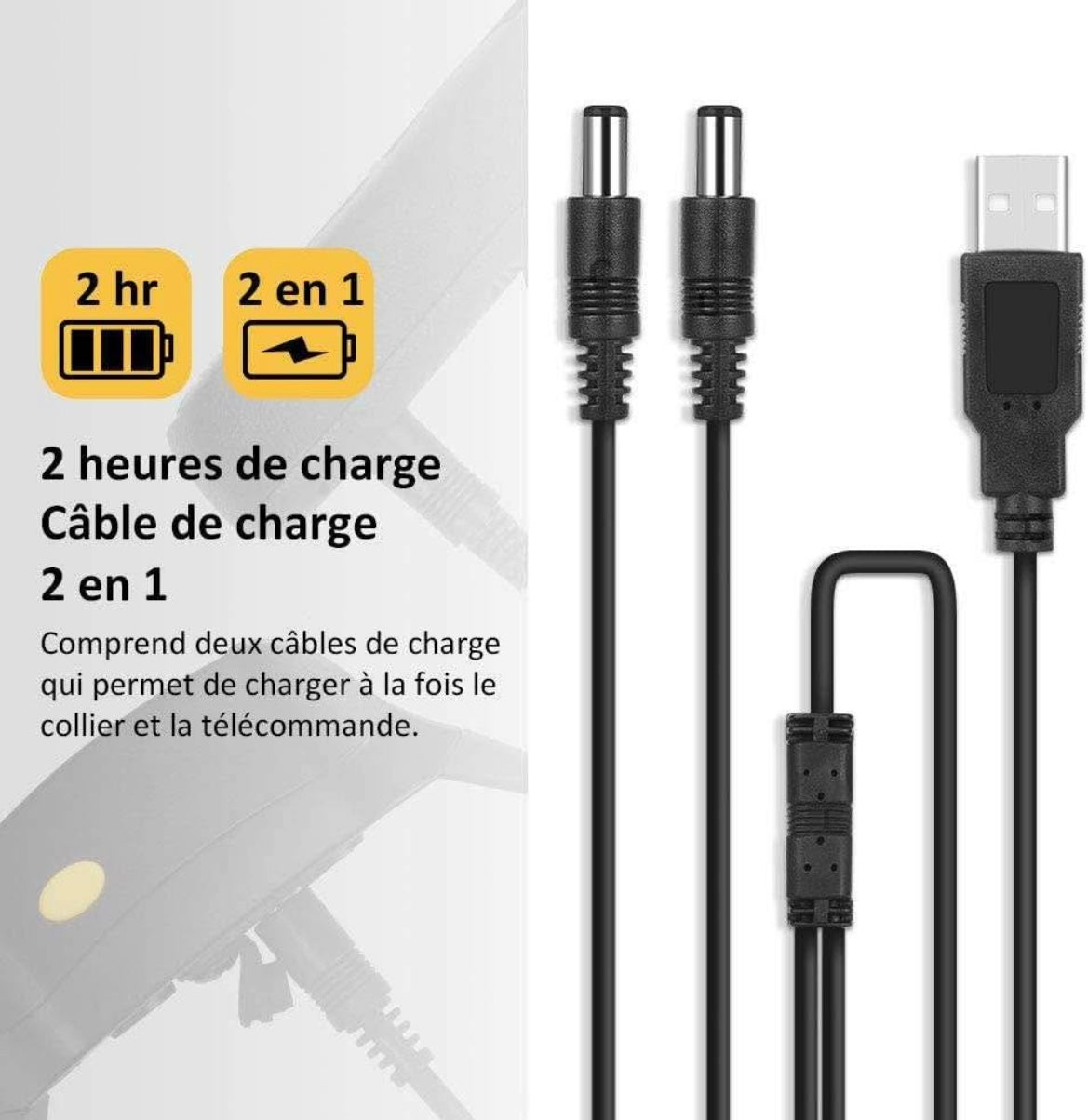 Rechargeable Electric Training Collar: After 3 hours of fast charging, you can use our training collar for 10-12 days with a full charge; our electric dog collar also comes with a 2-in-1 charging cable, we can charge the remote control and collar at the same time