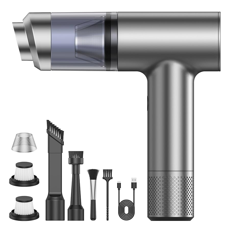 - Fast charging and long use: the handheld vacuum cleaner can work continuously for more than 20 minutes on a single charge and stay in standby mode for up to 30 days. It is also equipped with a high-quality Li-ion battery and a Type-C charging cable that can be recharged in 3 to 3.5 hours