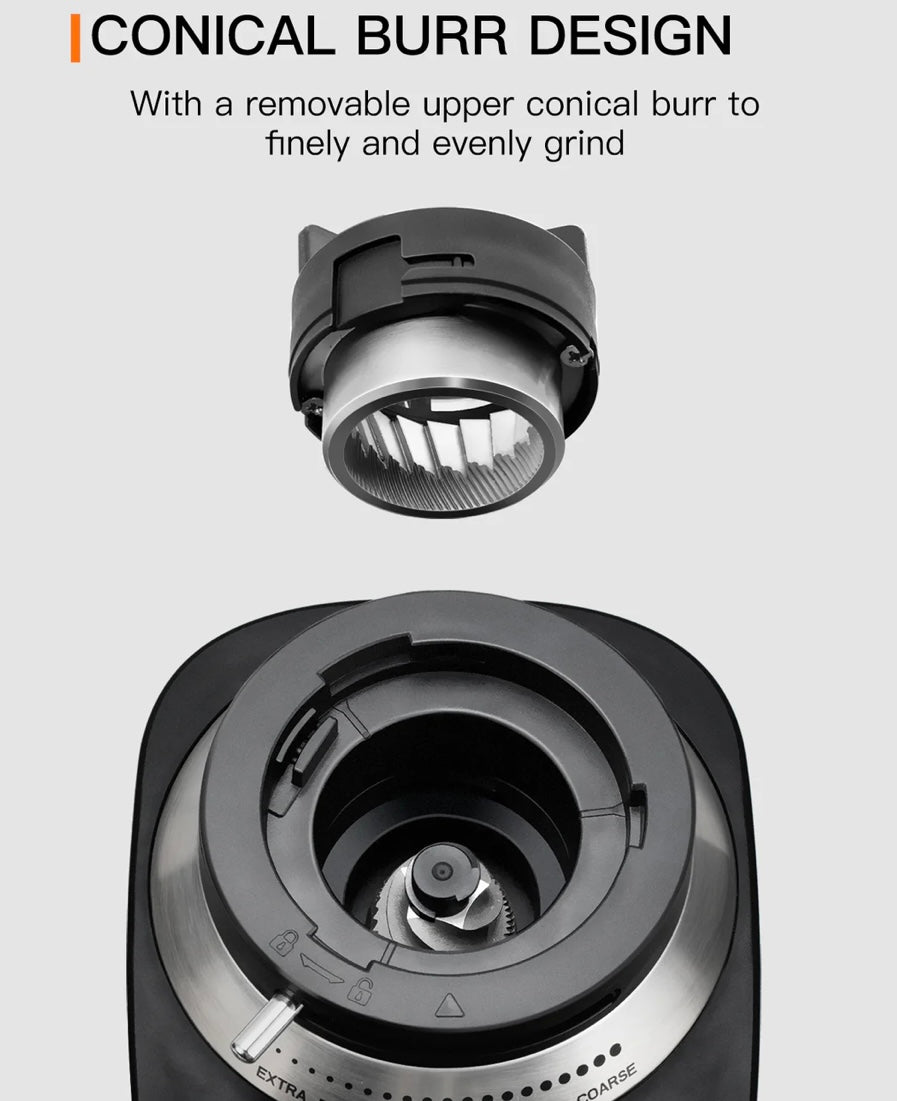 The professional grade conical burr coffee grinder ensures none of the beans essential oils are lost by way of oxidation, ensuring the richest quality flavor and aroma.