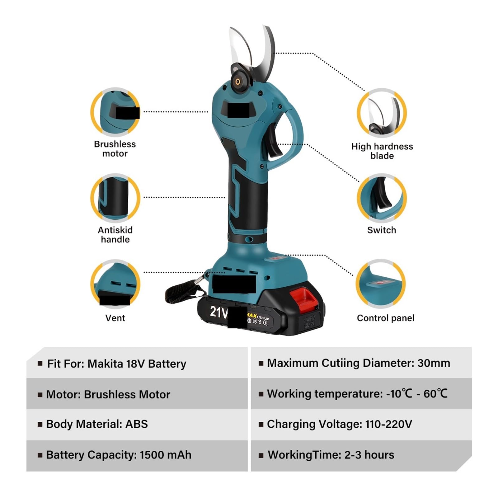 - The Brushless Pruning Shears features a powerful and efficient brushless motor that delivers high performance and long-lasting durability